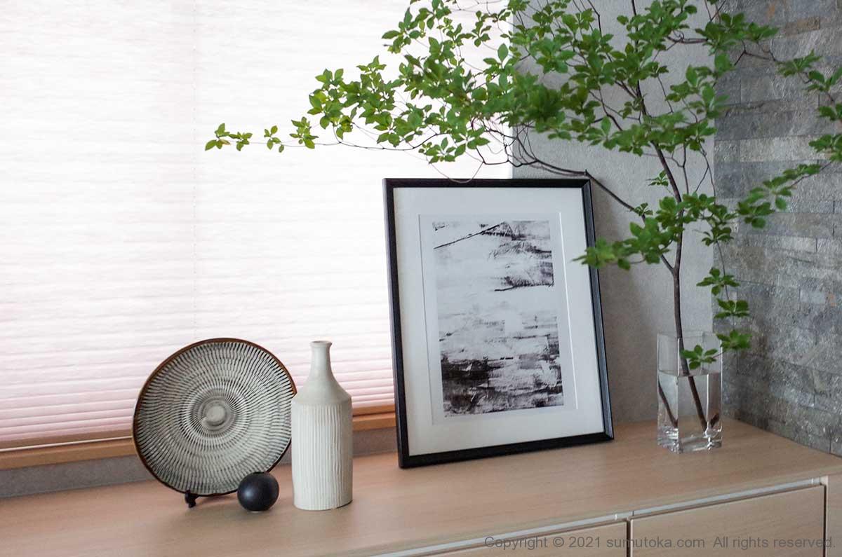ダイニングの窓につける和紙のプリーツスクリーンなので、すぐ隣で鍋やホットプレート料理をする機会も多く、油染みの心配も若干ありました。そのため、濃いウメムラサキが第一候補になっていた側面もありましたが、結局は「3万円以下のものだし、経年劣化と割り切ってその時は買い替え」という夫の判断で、薄い色を躊躇せず購入。好きな色だけで飛びつかず、全体の調和を重要視して選んで正解だったなあと思っています。