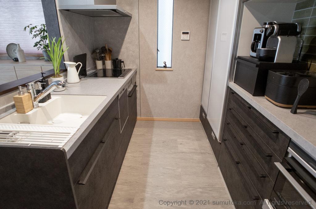 うちはオープンハウスの系列会社で注文住宅を建てるオープンハウスアーキテクトで施工しました。キッチンは標準プランでクリナップの「ステディア」シリーズが選べる仕様です。カウンターやコンロの壁パネルなども一揃い、指定された品目のなかから選べるようになっています。もちろん追加料金を支払うことで、グレードUPも可能です。